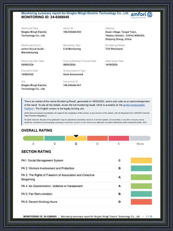 Prije isporuke serija proizvoda, Ningbo Mingli Electric Technology Co., Ltd. također će provesti konačnu inspekciju dimenzije kako bi osigurala da svaka serija proizvoda ispunjava specifične zahtjeve kupca. Ova je veza dodatno osigurati dosljednost dimenzija od prvog do posljednjeg proizvoda, izbjegavajući bilo kakve pogreške u prijevozu i masovnoj proizvodnji.
